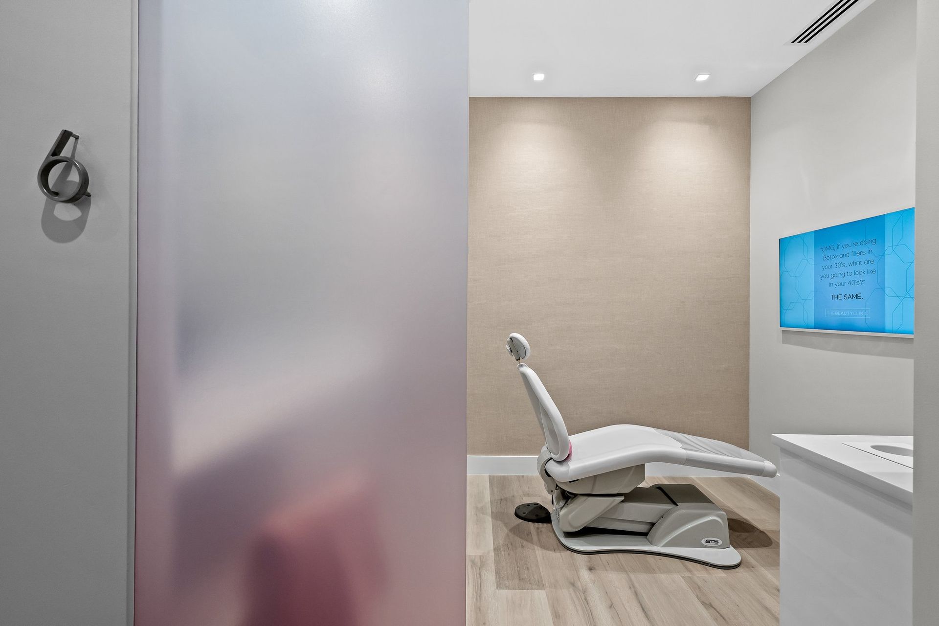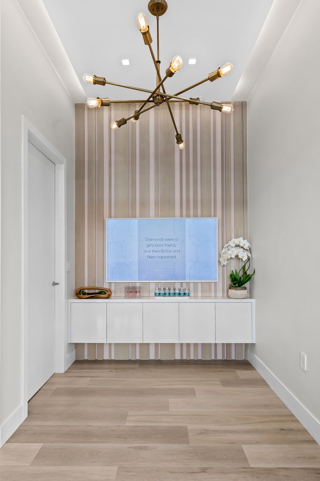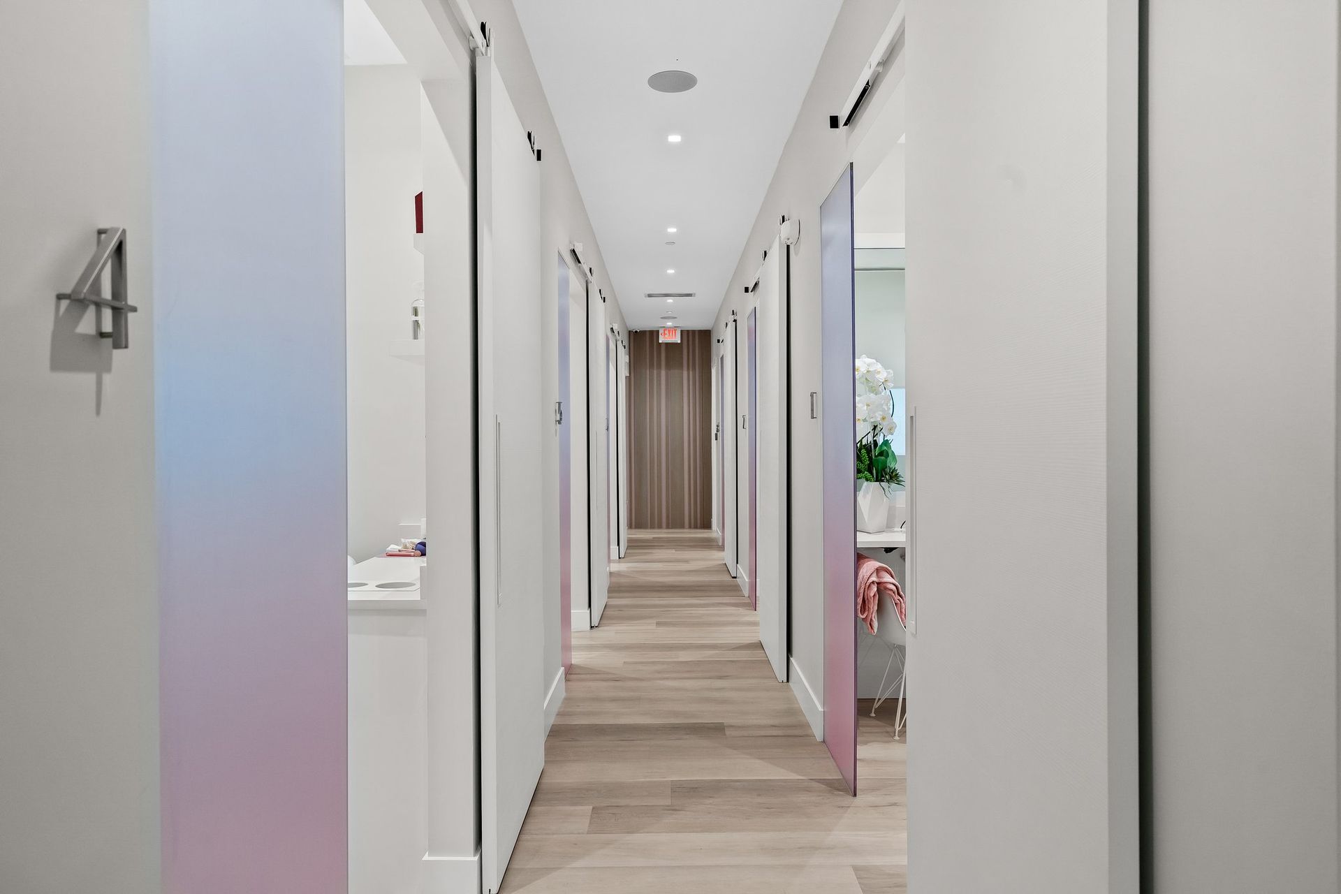 A 1500 SF build out of a high end Botox and facial aesthetics spa in Ft. Lauderdale. Custom glass panels, luxury vinyl plank flooring, custom wall covering and custom drywall ceiling details